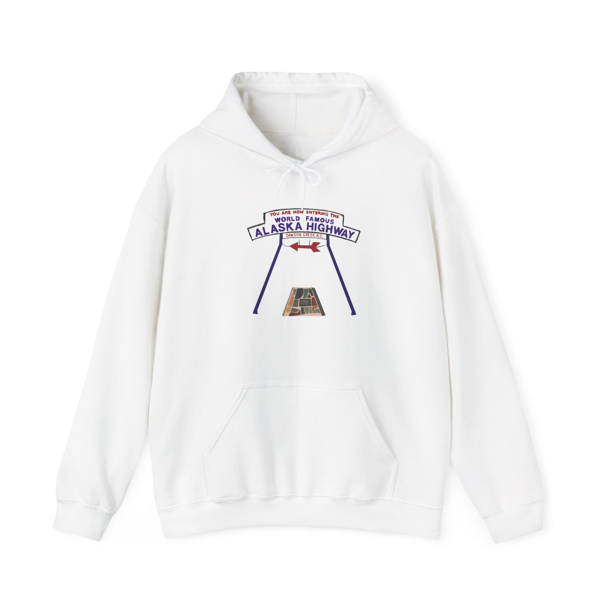 This Alaska Highway hoodie is a comfortable pullover built for cold weather, travel, and everyday wear, and a durable souvenir from one of the most iconic routes in North America.
